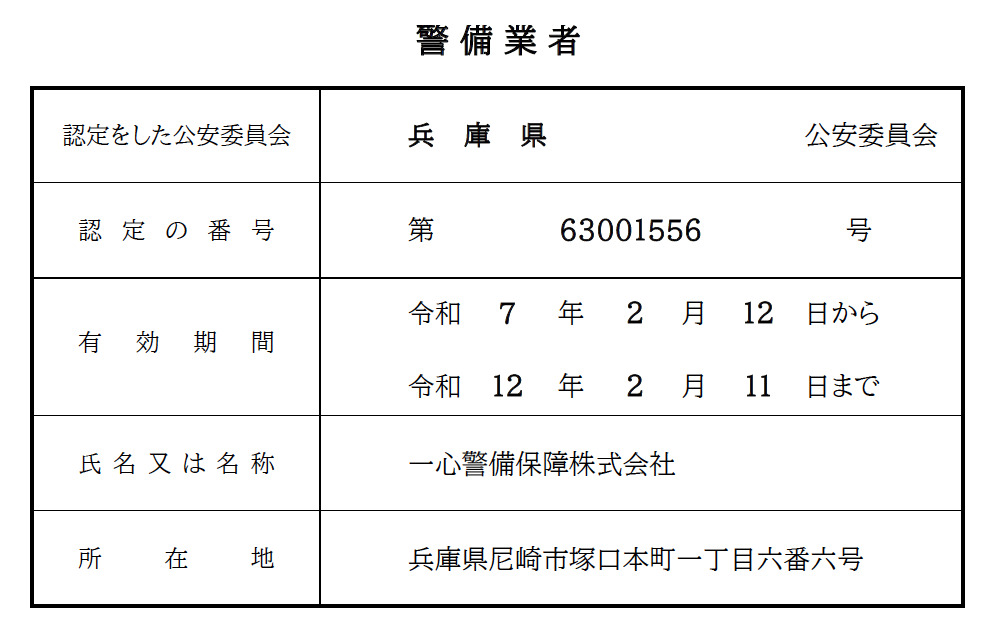 | 会社名 | 一心警備保障株式会社 |